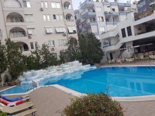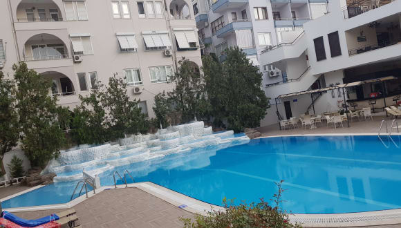Das Hotel liegt ca. 500 m vom Zentrum Alanyas entfernt. Der Hafen und der Strand befinden sich jeweils etwa 100 m entfernt. Der Flughafen Antalya liegt ca. 110 km entfernt.