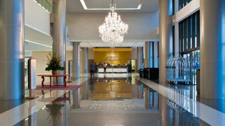 Das Bourbon Conmebol Convention Hotel bietet eine helle und geräumige Unterkunft mit eleganten Holzmöbeln und Fliesenboden. Die Unterkunft hält eine Reihe von Annehmlichkeiten bereit, darunter 168 Zimmer, einen Aufzug, einen Garten zur Entspannung sowie einen TV-Raum. Es stehen verschiedene Dienstleistungen wie eine Gepäckaufbewahrung, ein Safe, ein Transferservice und ein Zimmerservice zur Verfügung. Die gesamte Unterkunft ist Nichtraucher und bietet rollstuhlgerechte Einrichtungen.