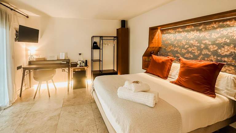 Die Zimmer sind klimatisiert und ausgestattet mit modernen Annehmlichkeiten wie einem Flachbild-TV mit Satellitenkanälen, einer Minibar und einer Kaffeemaschine. Alle Zimmer verfügen über eine Dusche, kostenlose Pflegeprodukte, einen Schreibtisch sowie einen Wasserkocher. Ausgewählte Zimmer bieten zusätzlich einen Balkon oder einen schönen Blick auf die Berge. Die Zimmer sind mit Bettwäsche und Handtüchern ausgestattet.