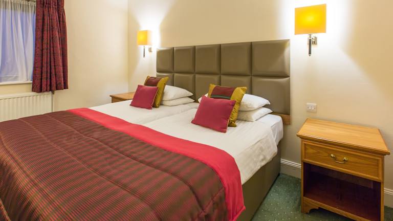 Die Zimmer sind mit Teppichböden ausgelegt und bieten verschiedene Bettarten. Zur Standardeinrichtung gehören ein Schreibtisch, ein Telefon mit Direktwahl, ein TV-Gerät mit Satelliten-/Kabelempfang, eine Tee-/Kaffeemaschine, sowie ein Badezimmer mit Dusche und Badewanne. Es sind auch rollstuhlgerechte Zimmer und Familienzimmer verfügbar.