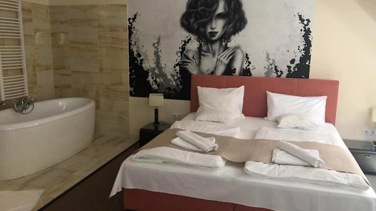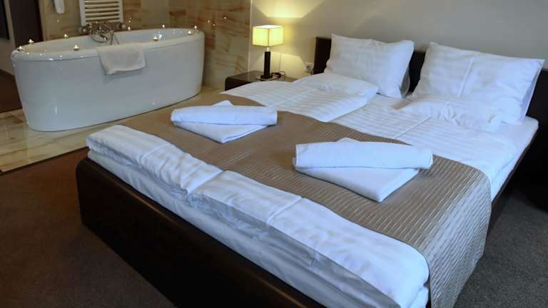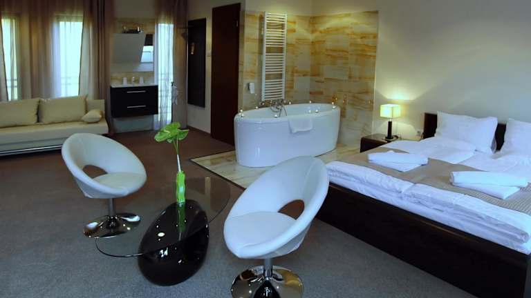 Das Hotel Brill Orosháza bietet elegante Zimmer und Suiten. Alle Unterkünfte sind klimatisiert und mit einem Flachbild-Kabel-TV sowie einem Kühlschrank ausgestattet. Die modernen Badezimmer verfügen entweder über eine ebenerdige Dusche oder eine Badewanne. Besonders hervorzuheben sind einige Suiten, die mit einer freistehenden Badewanne im Schlafzimmer ausgestattet sind.