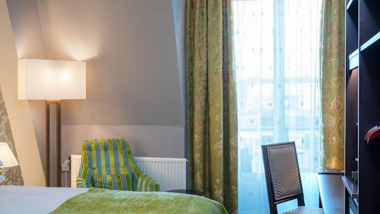 Die Zimmer im Hotel Bristol sind hell gestaltet und verfügen über eine individuelle Klimaanlage, die gegen Gebühr reguliert werden kann. Jedes Zimmer ist mit einem Doppelbett, einem Safe, einer Minibar sowie einem Schreibtisch ausgestattet. Zudem gehören ein Minikühlschrank, eine Tee-/Kaffeemaschine, ein Bügelset und eine Hosenpresse zur Ausstattung. Unterhaltungsangebote bieten ein Direktwahltelefon, ein TV-Gerät mit Satelliten-/Kabelempfang und Wifi ohne Gebühr. Die Badezimmer sind mit einer Dusche und einer Badewanne ausgestattet und beinhalten einen Haartrockner sowie Kosmetikartikel. Rollstuhlgerechte Zimmer sind ebenfalls verfügbar.