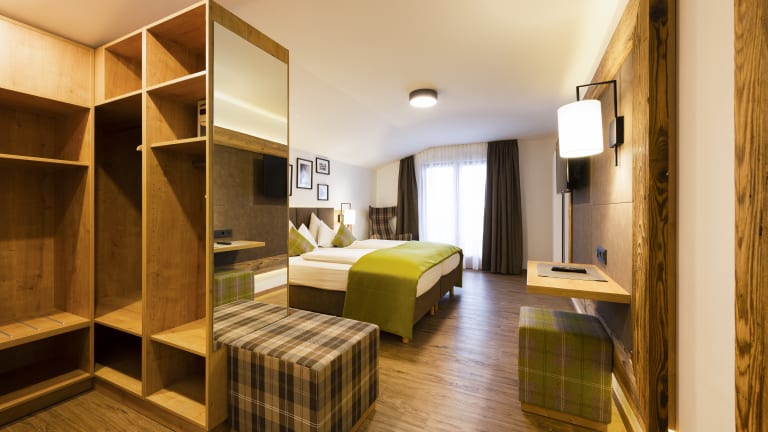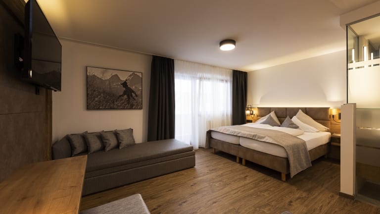 IN UNSEREN ZIMMERN EIN "DAHOAM" GEFUNDEN! Tagsüber stets auf der Achse – und abends erstklassige Kulinarik und Wellness genießen, bevor man ins kuschelige Bett fällt und vom nächsten Abenteuer träumt. Dafür eignen sich unsere hochwertigen Zimmer mit Halbpension bestens. In unserem Hotel in Fulpmes warten einladende Einzelzimmer, facettenreiche Doppelzimmer und großzügige Appartements auf alle, die das Stubaital in seiner ganzen Pracht kennenlernen möchten. HIGHLIGHTS SUITEN & ZIMMER · moderne, traditionell eingerichtete Wohlfühl-Zimmer · mit Dusche / WC oder Bad / WC, Flachbild-TV, Radio, Telefon · Balkon mit Blick auf die Stubaier Bergwelt