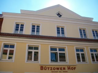 Bützower Hof – Gasthof mit Tradition Genießen Sie historischen Charme in denkmalgeschützter Fachwerk-Architektur aus dem Ende des 18. Jahrhunderts. Unser seit 2001 liebevoll geführtes Haus in der Innenstadt von Bützow ist für seinen individuellen Service und sein besonderes Ambiente bekannt. Das Haus ist um 1799 erstmals erwähnt und wurde bis 1816 als Backstube genutzt. Fortan ist es bis heute Hotel und Restaurant. Der älteste noch genutzte Saal von Bützow bietet reichlich Platz für Feiern und Konferenzen. Wegen seiner unmittelbaren Nähe zu den Städten Rostock, Schwerin, Güstrow und Wismar ist unser Hotel ein idealer Anlaufpunkt sowohl für Städte- als auch Geschäftreisende.