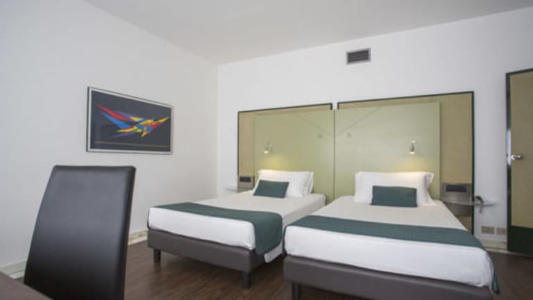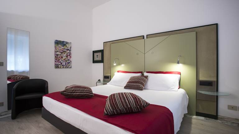 Die schallisolierten Zimmer sind klimatisiert und verfügen über ein Doppelbett sowie ein Sofabett. Zustellbetten können angefragt werden. Zur Ausstattung gehören eine Minibar, ein Flachbild-TV, ein Kühlschrank, eine Tee-/Kaffeemaschine, ein Schreibtisch und ein Safe. Die Badezimmer sind mit Dusche und Badewanne ausgestattet, auch ein Föhn und Kosmetikartikel stehen zur Verfügung. Das Hotel bietet Nichtraucherzimmer.