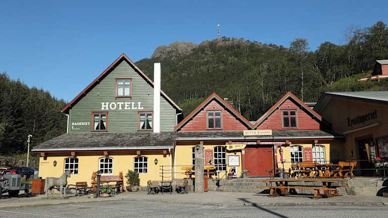 Das Hotel befindet sich in einem historischen, malerischen Gebäude aus dem 19. Jahrhundert in Hunnedalsveien, 65 km von Stavanger entfernt. In der Umgebung gibt es zahlreiche Aktivitäten in der Natur, darunter der Wasserfall Månafossen in 15 km Entfernung und Gloppedalsura mit seinen Lawinensteinen, die nach 2 km erreichbar sind. Der Lysefjord und der Pulpit Rock sind in etwa 60 Fahrminuten erreichbar.