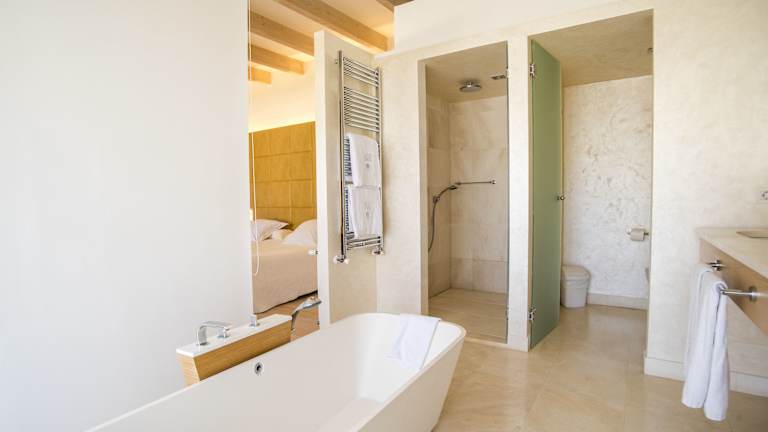 Die Zimmer des Hotels sind im minimalistischen Stil gestaltet und betonen ursprüngliche Elemente wie antike Möbel und Steinwände. Alle Zimmer sind mit Klimaanlage, Sat-TV und einem eigenen Bad ausgestattet. Zudem verfügen sie über Balkon, Minibar, Safe und kostenloses WLAN. Es werden Doppelzimmer mit Innenhofblick oder mit Garten- und Poolblick angeboten. Die letzten Teilrenovierungen fanden 2019 statt.