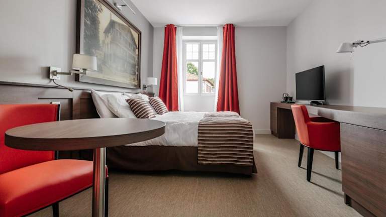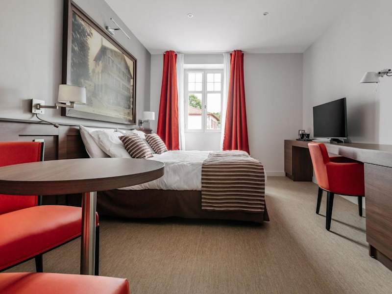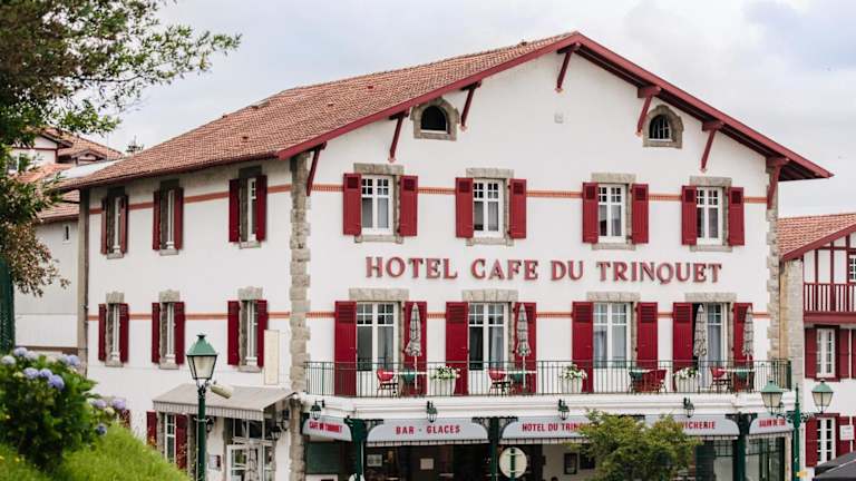 Das Hotel Café du Trinquet befindet sich in Cambo-les-Bains, am Ufer des Flusses La Nive, etwa 2 km vom Bahnhof entfernt. Die Umgebung bietet Zugang zu verschiedenen Freizeitmöglichkeiten und Sehenswürdigkeiten. Der Lac de Saint-Pée ist ca. 10 km entfernt, während der Flughafen Anglet in einer Distanz von 15 km liegt. Der Strand von Anglet ist ebenfalls nur 20 km entfernt.