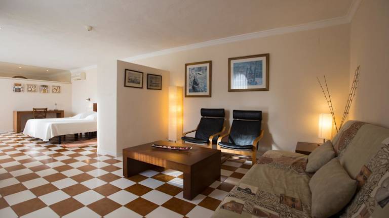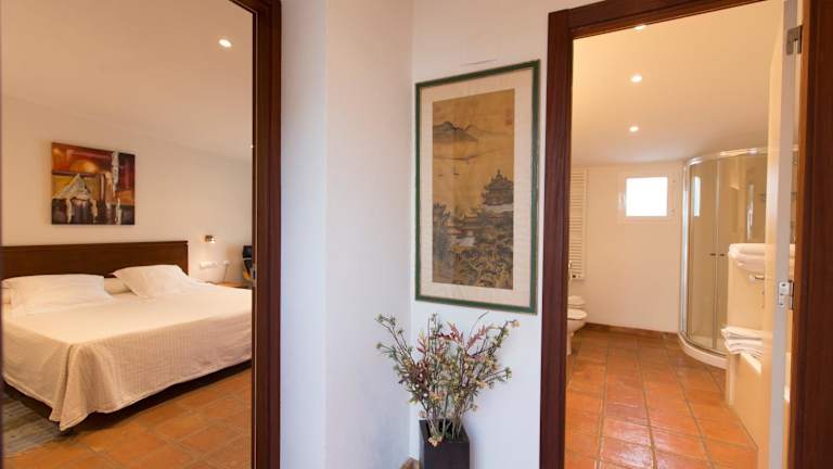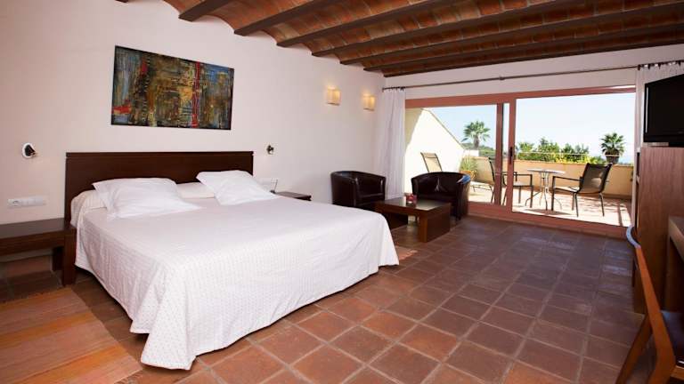 Die Zimmer im Hotel Cal Naudi sind im Landhausstil gestaltet und bieten eine gemütliche Atmosphäre. Jedes Zimmer verfügt über eine große eigene Terrasse, auf der Sie den Blick auf das Meer und die umliegende Landschaft genießen können. Zur weiteren Ausstattung gehören ein komfortabler Sitzbereich mit Sat-TV sowie ein eigenes Badezimmer mit Haartrockner, Bademantel und Hausschuhen.