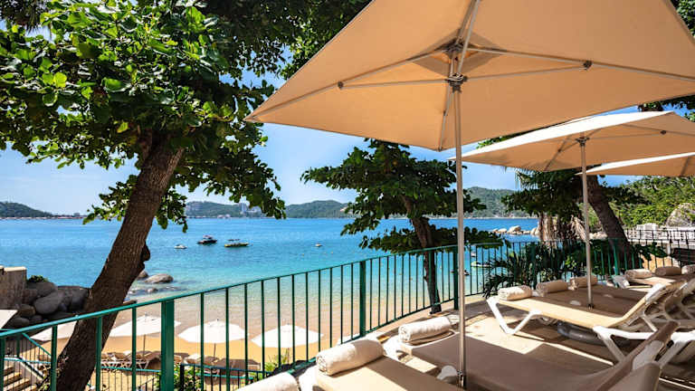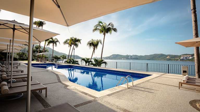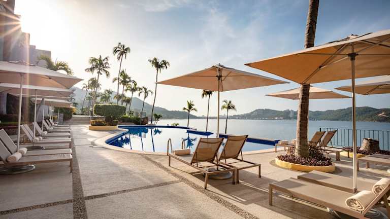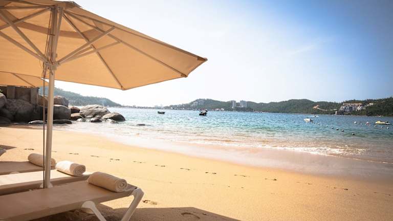 Das Resort liegt in einer Badebucht, nur etwa 100 m vom Strand entfernt. Der internationale Flughafen ist ca. 15 Minuten südlich und das Zentrum von Acapulco ca. 15 Minuten nördlich vom Hotel entfernt.