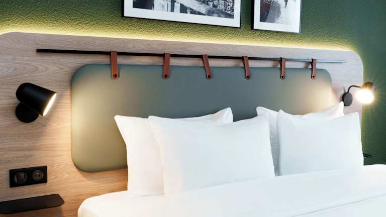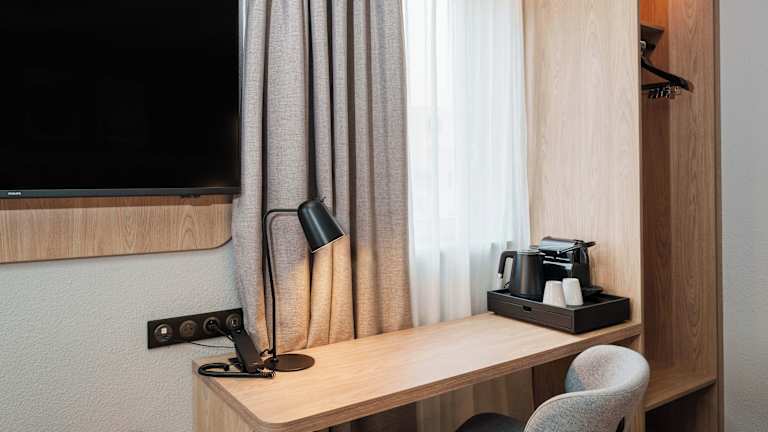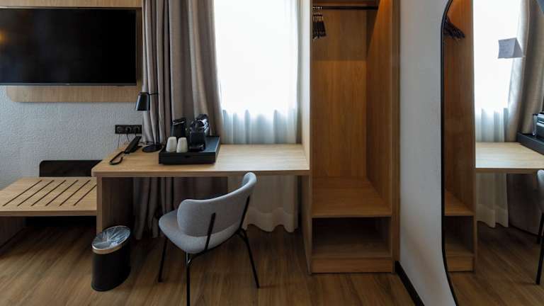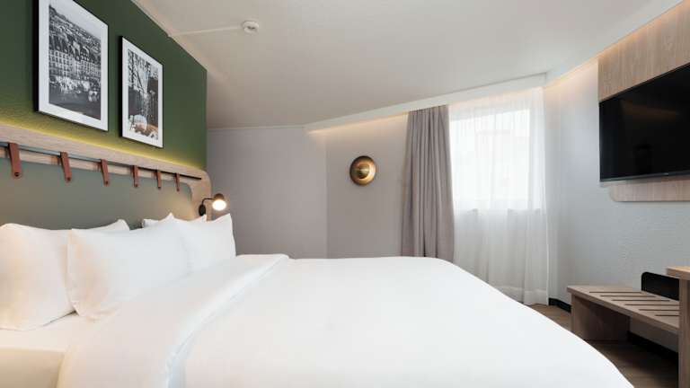 Die klimatisierten, schallisolierten Zimmer sind mit einem Doppelbett, einem Schreibtisch und einer Tee-/Kaffeestation ausgestattet. Zu den Kommunikations- und Unterhaltungsangeboten gehören ein TV-Gerät, ein Radio, ein Wecker sowie Wifi. Die Badezimmer bieten eine Dusche, eine Badewanne, ein Bidet sowie Kosmetikartikel. Zudem sind rollstuhlgerechte Zimmer mit barrierefeindlichen Bädern verfügbar. Es gibt Familien- und Nichtraucherzimmer.