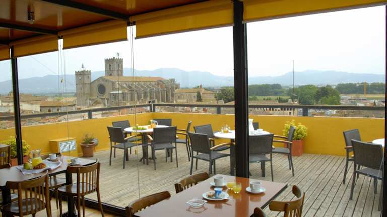 Das Hotelrestaurant hat sich auf traditionelle katalanische Gerichte spezialisiert. Gäste können die Speisen entweder auf der Terrasse oder im Speisesaal unter der Gewölbedecke geniessen. Zusätzlich steht eine Snackbar zur Verfügung.