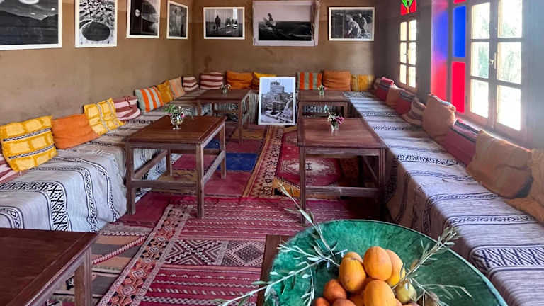 Das Hotel Carrefour des Nomades bietet eine heimelige Atmosphäre mit einem Aussenpool, einem Garten, einer Gemeinschaftslounge und einer Terrasse. Zu den Annehmlichkeiten gehören Zimmerservice, Conciergeservice und kostenloses Wifi. Es werden verschiedene Sprachen gesprochen, darunter Arabisch, Deutsch, Englisch und Spanisch.