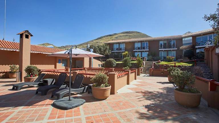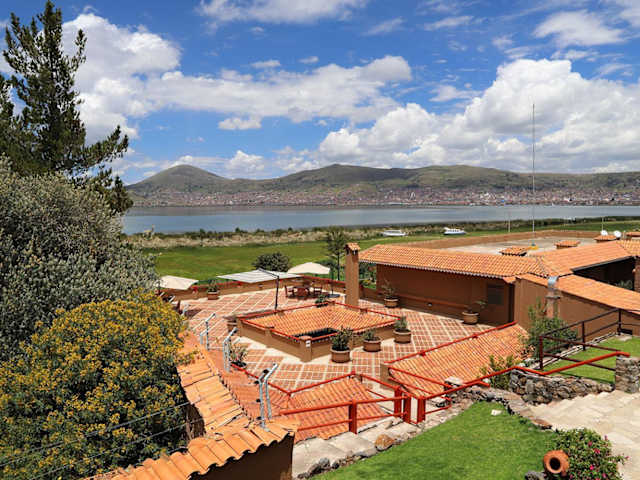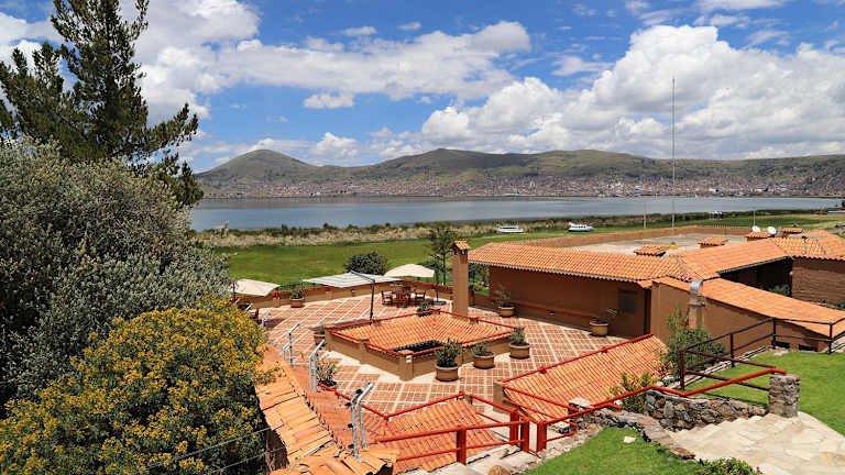 Das Hotel Casa Andina Private Collection Puno befindet sich in Puno, Peru, mit herrlichem Blick auf den Titicacasee und die umliegenden Berge.