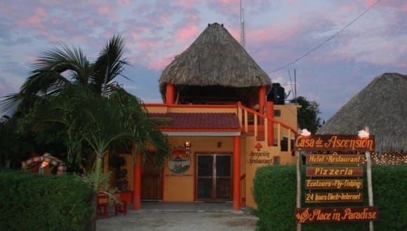 The Hotel Casa de Ascension in Punta Allen, Sian Kaan, is a beautiful, small Hotel in the heart of the village Punta Allen (Mexico), 100 steps from the Caribbean beach and 70 steps from the Lagoon. The hotel is virtually at the end of the road, south of Tulum, in a 1.3 million acre protected oasis of extraordinary natural beauty – the Sian Ka’an Biosphere Reserve, Mexico’s largest wetland nature reserve.Explore the Mayan ruins dotting the jungle landscape, snorkel on the Barrier Reef that lies just beyond your hammock, go kayaking in the turquoise waters of the Caribbean Sea or in the vast expanse of saltwater lagoon behind us, try world-class fly fishing in the Bahia de la Ascension saltwater flats, enjoy the fresh locally caught seafood in our famous restaurant, observe the sea turtles and dolphins swimming in the lapping waves… or just relax with a book and a margarita on our airy terrace with a nice view over Punta Allen.