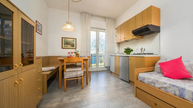 Die Apartments im Casa Emilio sind geräumig und bieten eine gemütliche Atmosphäre. Jedes Apartment verfügt über eine Küchenzeile mit einem Essbereich, in dem Sie Ihre eigenen Mahlzeiten zubereiten können. Vom Balkon aus können Sie den wunderschönen Blick auf den See genießen. Das Wohnzimmer ist mit einem komfortablen Schlafsofa und einem Fernseher ausgestattet. Im eigenen Bad finden Sie eine Dusche. Kostenloses WLAN steht Ihnen in allen Apartments zur Verfügung.