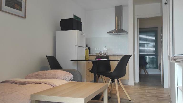 Die Ferienwohnung besteht aus einem Schlafzimmer, einem Wohnzimmer sowie einer voll ausgestatteten Küche mit Kühlschrank und Kaffeemaschine. Zudem verfügt sie über ein Badezimmer mit Dusche und Haartrockner. Handtücher und Bettwäsche werden zur Verfügung gestellt. Die Unterkunft bietet somit eine heimelige Atmosphäre für die Gäste.