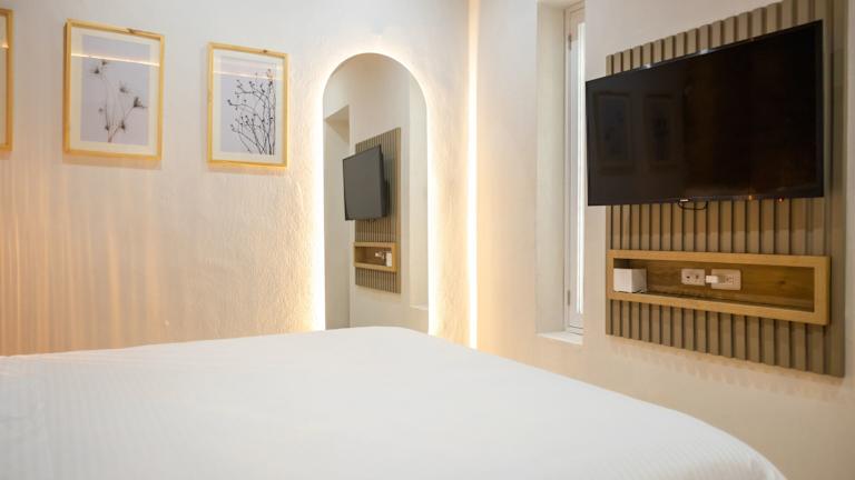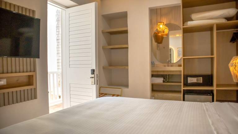 Die Zimmer sind modern und komfortabel eingerichtet und verfügen über Klimaanlage, einen Balkon oder eine Terrasse, sowie ein Doppelbett oder ein Queensize-Bett. Zur Ausstattung gehören ein Safe, eine Minibar, ein TV-Gerät mit Satelliten- oder Kabelfernsehen, Wifi ohne Gebühr, sowie ein Badezimmer mit Dusche und Badewanne, ausgestattet mit Haartrockner und Kosmetikartikeln.