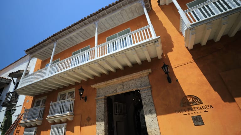 Das Casa Pestagua Boutique Hotel befindet sich in einer beeindruckenden aristokratischen Villa aus dem 18. Jahrhundert, im Herzen von Cartagena, nur 30 Meter vom Santo Domingo Platz entfernt. Die Anbindung an den Flughafen ist optimal, da der Rafael Nuñez Cartagena Internationale Flughafen 5,5 km entfernt liegt und der Ernesto Cortissoz Flughafen in Barranquilla 100 km vom Hotel entfernt ist.
