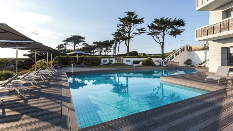 Das Hotel Castel Clara liegt in Goulphar und bietet einen atemberaubenden Blick auf die Bucht. Die Umgebung ist geprägt von einer reizvollen Naturlandschaft und Küstenschönheiten, ideal für erholsame Ferien.