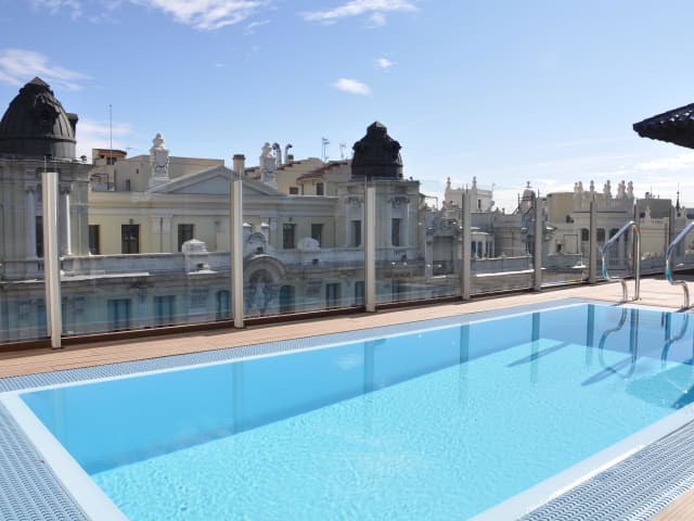 Das Catalonia Gran Vía ist ein Cityhotel, das im Jahr 1917 erbaut wurde. Es erstreckt sich über 7 Etagen und bietet einen Aussenpool sowie eine Sonnenterrasse. Das Hotel verfügt über 185 Zimmer, darunter Junior-Suiten, Einzel- und Doppelzimmer. Ein mehrsprachiges Personal steht rund um die Uhr zur Verfügung und bietet verschiedene Serviceleistungen für einen angenehmen Aufenthalt.