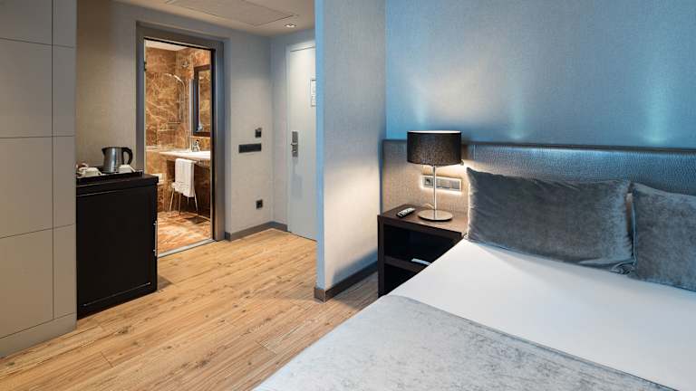 Die Zimmer im Hotel sind klimatisiert und mit einem Balkon ausgestattet. Sie verfügen über ein Doppelbett oder ein Kingsize-Bett, und Zustellbetten können auf Anfrage bereitgestellt werden. Zur Ausstattung zählen ein Safe, eine Minibar, ein Schreibtisch sowie eine Tee-/Kaffeemaschine. Zur Unterhaltung stehen ein Telefon mit Direktwahl und ein TV-Gerät mit Satelliten-/Kabelempfang zur Verfügung. Das Badezimmer bietet eine Dusche und eine Badewanne sowie einen Haartrockner. Rollstuhlgerechte Zimmer sind ebenfalls buchbar. Es sind sowohl Nichtraucher- als auch Raucherzimmer verfügbar.