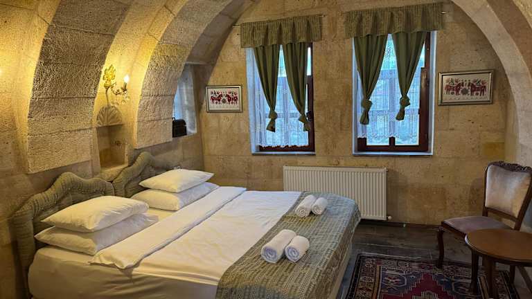Die Zimmer im Cave Art Hotel Cappadocia sind einzigartig gestaltet und bieten Ihnen entweder eine gewölbte Decke oder original erhaltene Höhlenzimmer. Jedes Zimmer ist im traditionellen osmanischen, Seljuk- und Hittite-Stil eingerichtet und strahlt eine gemütliche Atmosphäre aus. Einige Zimmer verfügen sogar über eine private Whirlpool-Badewanne, in der Sie sich entspannen können.