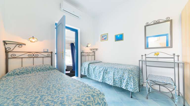 Die Zimmer sind ausgestattet mit Klimaanlage, eigenem Badezimmer, Flachbild-TV und kostenlosem Wifi. Die meisten Zimmer verfügen über einen Balkon oder eine private Terrasse mit Meerblick. Die Unterkunft bietet Doppelzimmer, Queensize-Zimmer sowie Familienzimmer an. Zusätzlich stehen Kinderbetten zur Verfügung.