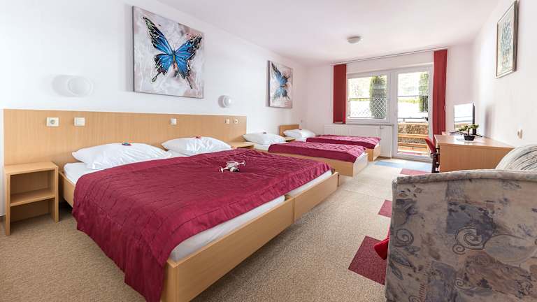 Die Zimmer im Hotel Center Bohinjsko Jezero sind neu ausgestattet, hell und geräumig. Jedes Zimmer verfügt über einen Balkon, auf dem Sie die frische Luft und den Blick auf die Umgebung genießen können. Das angenehme Ambiente und die begrenzte Anzahl von Zimmern sorgen für einen entspannten und komfortablen Aufenthalt. Das freundliche Personal steht Ihnen jederzeit zur Verfügung und erfüllt Ihnen gerne Ihre Wünsche.