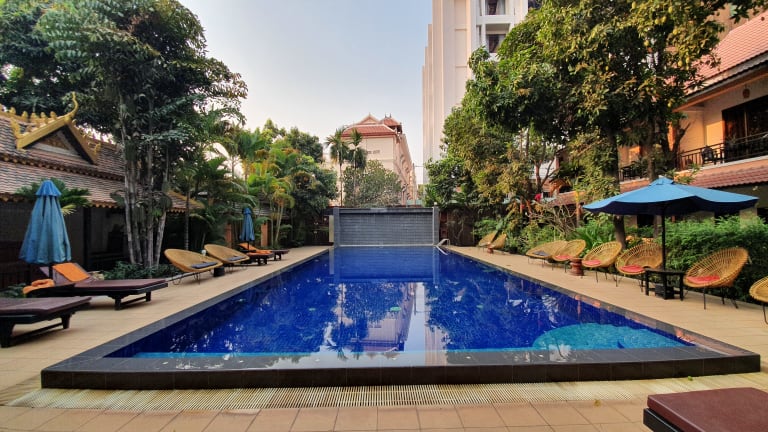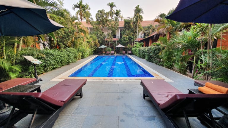 Das Hotel befindet sich direkt im Herzen von Siem Reap. Der Flughafen ist etwa 7 km entfernt und das Stadtzentrum liegt ca. 300 m entfernt. Golfplatz und Bahnhof sind ebenfalls in der Nähe.