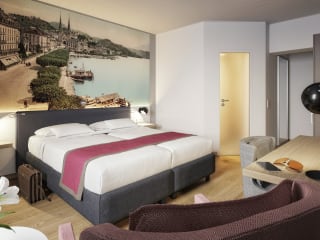 Komplett neue, helle Möbel, traumhaft hohe Matratzen, blütenfrische Bettwäsche, sanfte Beleuchtung, echte Holzböden und Bäder mit Dusche oder Badewanne en suite – das sind unsere Comfort-Zimmer. Beim Betreten der Zimmer beeindrucken die wanddeckenden Kunstbilder mit Nostalgie-Sujets der Stadt Luzern um 1900. Diese und die vier auserlesenen Farbpaletten Karminrot, Königsblau, Senfgelb und Bordeaux verleihen jedem Raum eine individuelle Note. Nichts wirkt fehl am Platz, nichts aufdringlich. Eigentlich viel zu schade, um die Augen zu schliessen.