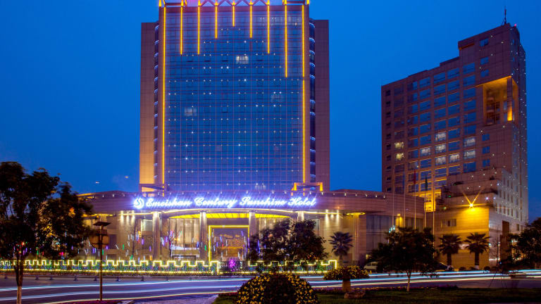 Das Century Sunshine Hotel - Emeishan ist ein 4-Sterne-Hotel in Leshan, das sowohl für Geschäftsreisende als auch für Urlauber geeignet ist. Das Hotel bietet eine Vielzahl von Annehmlichkeiten wie einen saisonal geöffneten Pool, ein Fitnesscenter und ein Bankettsaal. Die Gäste können zwischen zwei Restaurants wählen und den Zimmerservice in Anspruch nehmen. Das Hotel verfügt über kostenloses WLAN und einen Concierge-Service. Kostenlose Parkplätze stehen zur Verfügung und ein kostenloser Shuttle zum Busbahnhof wird angeboten. Die Zimmer sind komfortabel und modern eingerichtet und verfügen über Annehmlichkeiten wie Kühlschrank, LED-Fernseher und kostenfreies WLAN.