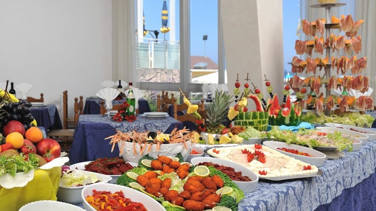 Verpassen Sie nicht die einzigartige Gelegenheit in unserem Garten zu frühstücken, wo Sie ein reichhaltiges Büfett erwartet. Genießen Sie Ihr Mittag und Abendessen in unserem klimatisiertem Speisesaal mit Sicht auf das Meer. Mit einem Mix aus Tradition und Innovation verwöhnt Sie unser Koch mit typischen Speisen aus der Emilia-Romagna sowie mit hausgemachte Pasta und Kuchen. Zum Mittag- und Abendessen bieten wir Ihnen außer einem großen Vorspeisen, Salat und Gemüsebüfett, drei Wahlmenus mit Fleisch- und Fischgerichte, sowie vegetarische Gerichte.
