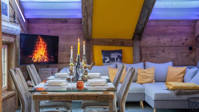 Die Unterkunft Chalet Schtuba überzeugt durch eine heimelige Atmosphäre und einen Balkon mit Stadtblick. Die liebevoll eingerichtete und gut ausgestattete Unterkunft bietet komfortable Übernachtungsmöglichkeiten für angenehme Ferien.