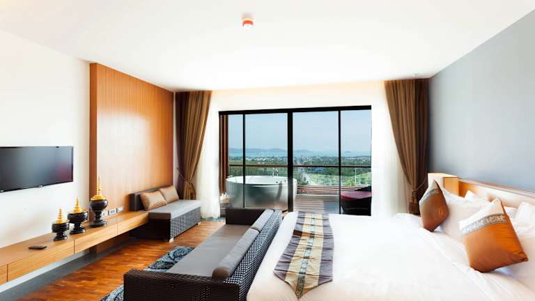 Das Hotel Chalong Chalet Resort And Longstay befindet sich auf einem majestätischen Hügel, von wo aus die herrliche Bucht Chalong und die ruhigen umliegenden Berge überblickt werden. Das Zentrum von Phuket ist nach rund 25 Minuten Fahrzeit erreichbar. Für kulinarische Erlebnisse, Einkaufsmöglichkeiten und Nachtleben stehen ebenfalls verschiedene Optionen zur Verfügung, die nach etwa 15 bis 30 Minuten Fahrt erreichbar sind. Der nächste Strand Naiharn ist etwa 25 Minuten entfernt und der Internationale Flughafen Phuket sowie der Flughafen Krabi sind jeweils rund 35 km entfernt.