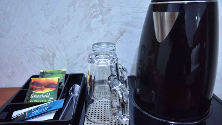 Das Hotel bietet ein Restaurant mit georgischer und europäischer Küche, wo täglich ein Frühstücksbuffet serviert wird. Es gibt auch eine Bar, an der lokale und internationale Getränke erhältlich sind. Die Gäste können besondere Diätgerichte anfragen und ihren Aufenthalt in der Gemeinschaftslounge mit TV-Bereich oder auf der Terrasse mit Strassenblick verbringen.