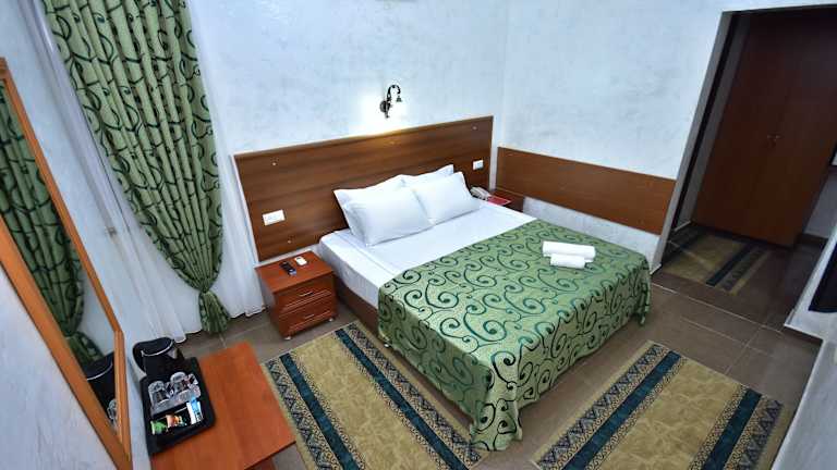 Das Hotel Chao befindet sich im Stadtzentrum von Batumi, nur 2 Gehminuten vom Zoo entfernt. Der Strand am Schwarzen Meer ist in 10 Gehminuten erreichbar. Der Bahnhof und der Busbahnhof von Batumi liegen nur 7 Minuten entfernt.