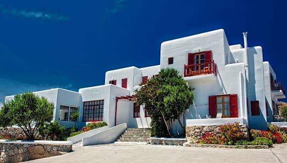 Das Hotel Charissi befindet sich in Mykonos-Stadt, nur etwa 800 m vom Stadtzentrum entfernt. Es liegt im Stadtteil Vryssi und bietet eine ruhige und dennoch zentrale Lage. Die Unterkunft ist ideal für Gäste, die die Privatsphäre einer etwas ruhigeren Gegend genießen möchten, aber dennoch in Gehweite zum Stadtzentrum wohnen möchten. In der Nähe des Hotels befindet sich eine Bushaltestelle, die eine gute Anbindung an das Zentrum von Mykonos-Stadt bietet. Der Sandstrand von Ornos ist nur 2 km entfernt.