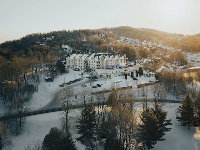 Das Hotel Château Bromont befindet sich in der malerischen Ortschaft Bromont, etwa 100 km vom nächsten Flughafen entfernt. Die Entfernung zu den Skipisten beträgt ca. 5.5 km, was die Lage für Wintersportler besonders attraktiv macht.