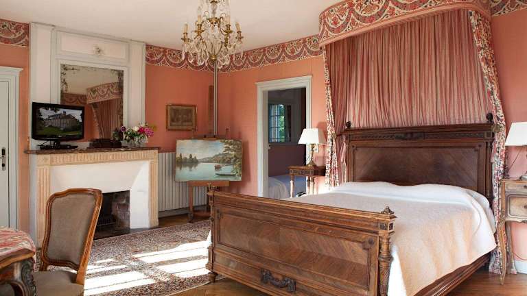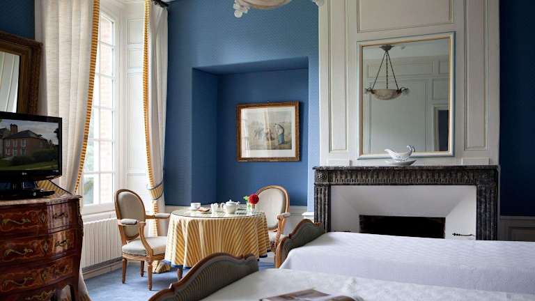 Die 17 Zimmer des Château du Landel sind raffiniert und individuell eingerichtet. Sie verbinden traditionellen Charme mit modernen Annehmlichkeiten wie Sat-TV und eigenem Bad. Ein eleganter Wohnbereich lädt zum Entspannen ein.