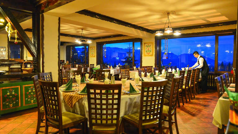 Im Restaurant werden rumänische Gerichte serviert. Zudem gibt es eine Bar, in der Gäste sich mit Getränken und Snacks stärken können. Beachten Sie, dass im Preis der Vollpension keine alkoholischen oder alkoholfreien Getränke enthalten sind.