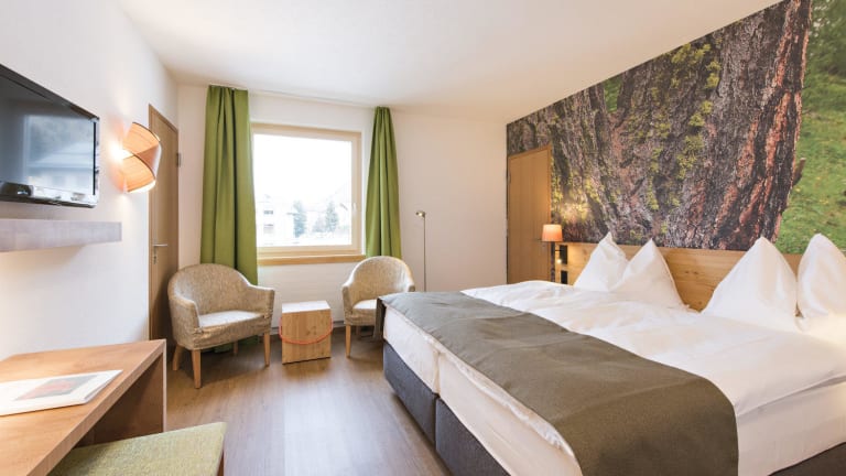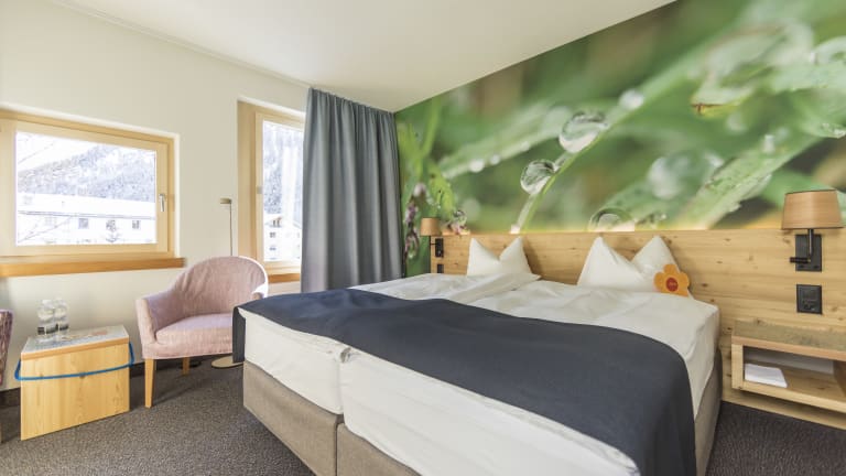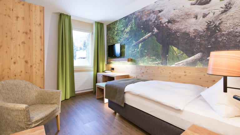 Jedes der gemütlichen, modernen Zimmer ist individuell eingerichtet und mit einem grossen Engadiner Bild aus der Natur, die Budget Doppelzimmer mit einem Märlibild geschmückt. Sämtliche Badezimmer sind modern und hell. Alle Zimmer verfügen über Telefon, Sat-TV, Radio, Highspeed-Internet und einen Safe.