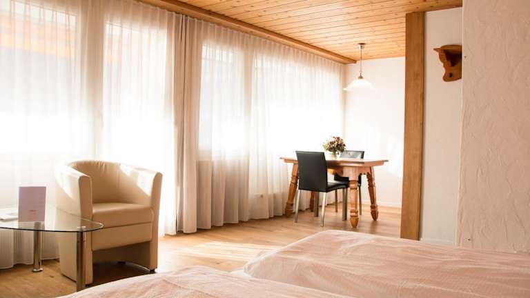 Die Zimmer des Hotels Chesa bestechen durch Parkettboden und Massivholzmöbel. Jedes Zimmer verfügt über einen Balkon mit Bergblick, einen Flachbild-Kabel-TV, Hausschuhe sowie ein eigenes Bad mit Haartrockner und Pflegeprodukten.