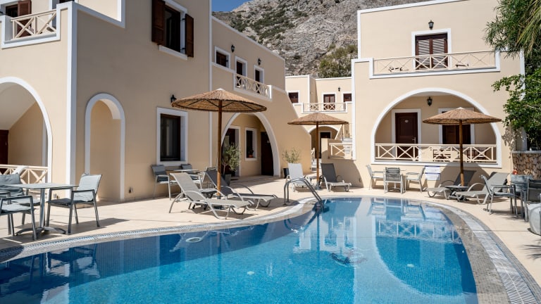 Das Hotel Chez Sophie befindet sich auf der Insel Santorin, nur 100 Meter vom Strand Kamari entfernt. Die Umgebung bietet eine Vielzahl von gastronomischen Einrichtungen, darunter traditionelle Tavernen und Restaurants.