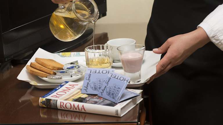 Jeden Morgen erwartet Sie im Speisesaal des Hotels ein köstliches kontinentales Frühstücksbuffet, das Ihnen einen guten Start in den Tag ermöglicht. Wenn Sie weitere Mahlzeiten suchen, finden Sie in den Straßen rund um das Hotel eine große Auswahl an Restaurants und Cafés, in denen Sie die italienische Küche genießen können.