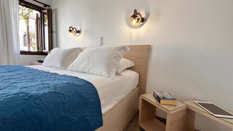 Die modern eingerichteten Zimmer führen auf einen möblierten Balkon oder eine Terrasse und bieten Ausblick auf den Garten, das Dorf oder die Ägäis. Jede Unterkunft verfügt über kostenfreies Wifi, Klimaanlage, Sat-TV, eine Minibar und ein Bügeleisen. Im eigenen Bad liegt ein Haartrockner bereit.