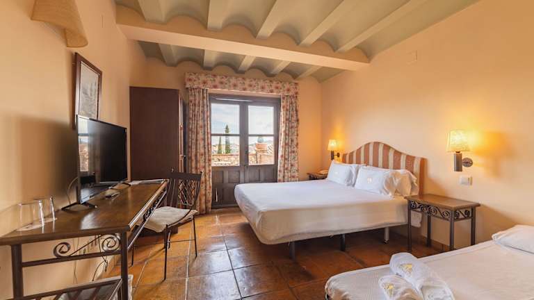 Die Zimmer im Hotel Cigarral de Caravantes sind komfortabel ausgestattet mit Klimaanlage (gegen Gebühr), Heizung, einem Safe (ohne Gebühr), Minibar (ohne Gebühr), Telefon, Sat-TV, WLAN (ohne Gebühr) sowie einem Balkon oder einer Terrasse. Das Badezimmer ist mit einer Dusche und einer Badewanne ausgestattet und verfügt über einen Haartrockner. Rollstuhlgerechte Zimmer sind ebenfalls verfügbar.