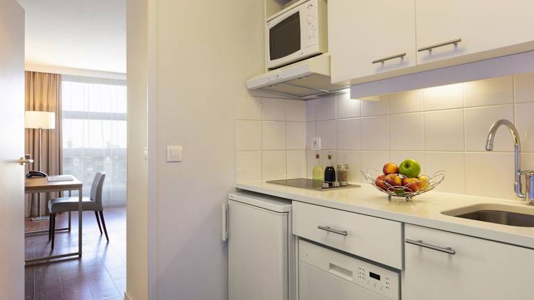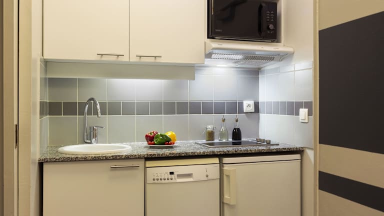 Die Zimmer verfügen über eine Küche, ein Badezimmer und bieten über einen Balkon oder eine Terrasse einen Strassenblick. Die Ausstattung umfasst ein Queensizebett, ein Sofabett sowie ein voll ausgestattetes Küchenfeld. Für weiteren Komfort sorgen ein Telefon mit Direktwahl, ein TV-Gerät, WiFi und ein Safe. Die Bäder sind mit Dusche und Badewanne ausgestattet, zudem stehen den Gästen Kosmetikartikel und Handtücher zur Verfügung.