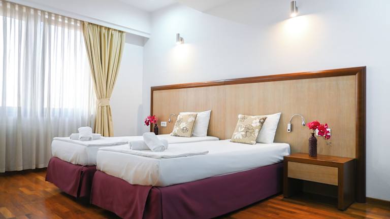 Die Zimmer im Hotel sind mit einer Klimaanlage ausgestattet, die für ein behagliches Raumklima sorgt. Jedes Zimmer verfügt über ein Telefon, einen TV sowie einen Zugang zu kostenlosem Wifi. Die Badezimmer sind mit einer Dusche und einer Badewanne eingerichtet und bieten einen Haartrockner.