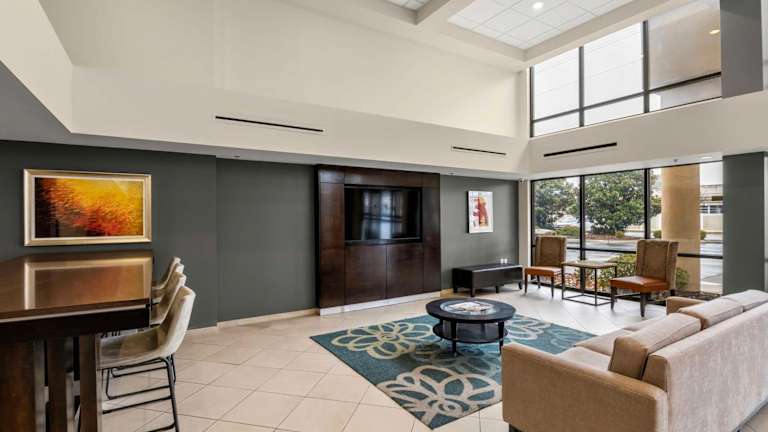 Das Hotel Clarion Charlotte Airport & Conference Center bietet moderne Annehmlichkeiten, darunter kostenfreies Wifi und einen saisonalen Aussenpool. Es handelt sich um ein Nichtraucherhotel mit einem 24-Stunden-Shuttleservice zum Flughafen.